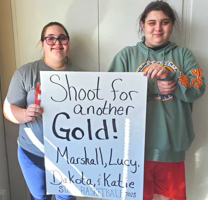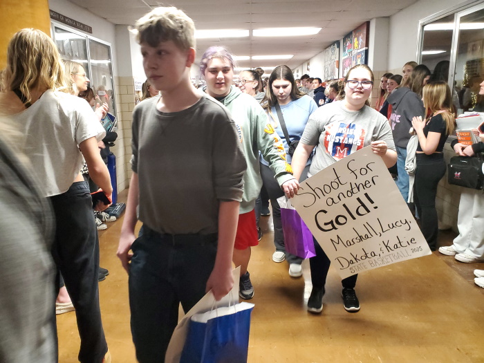 On Friday, afternoon on March 7, 2025, Morrison High School students participated in a “good luck” sendoff for Emily Hoffman and Samantha Schaefer. These members of the Bi-County Bulldogs Basketball team qualified to play in the State Tournament.